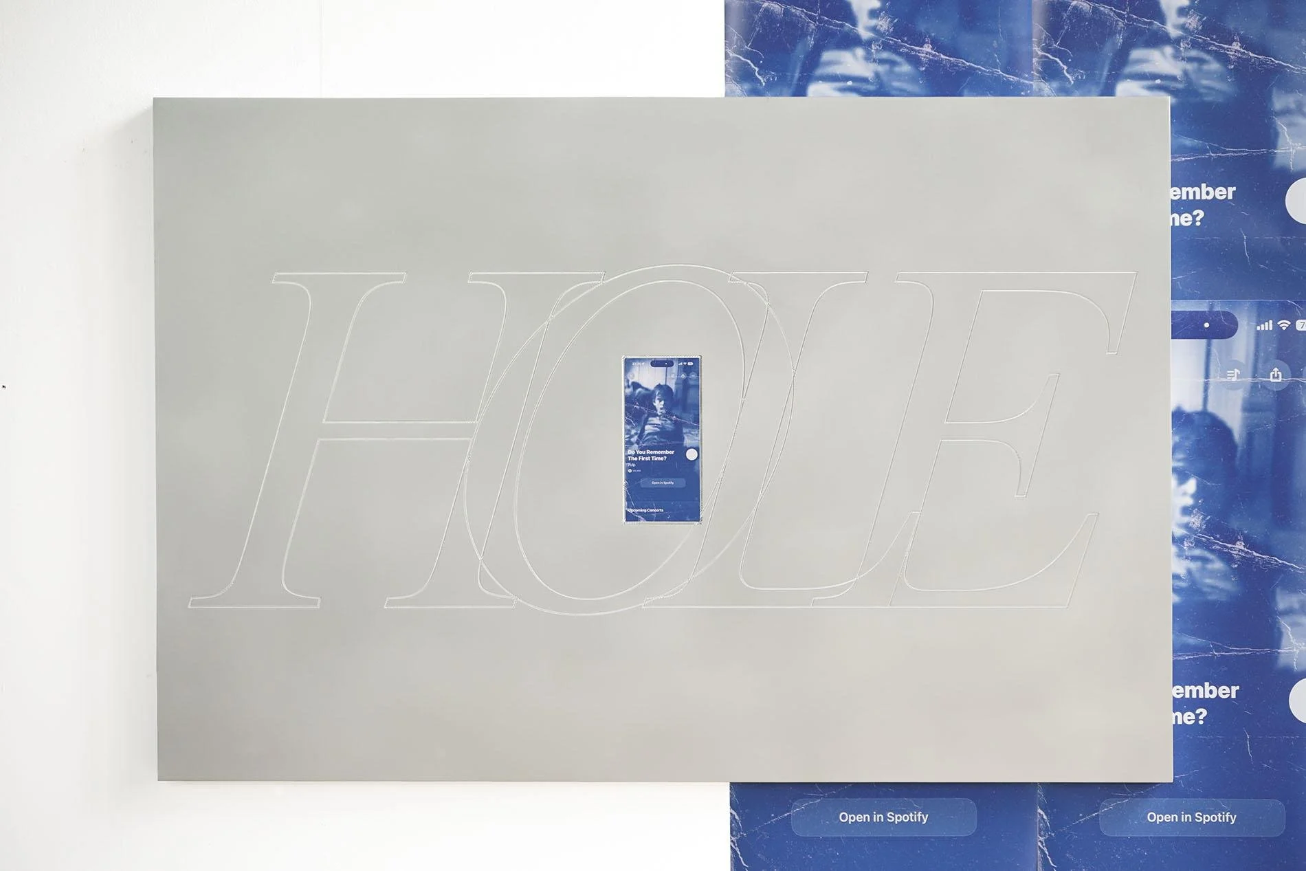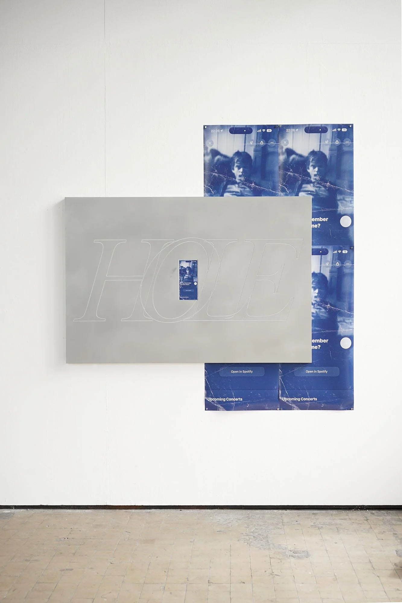 Engraved aluminum plate 150x100cm, digital print 11x23.9cm, aluminum frame