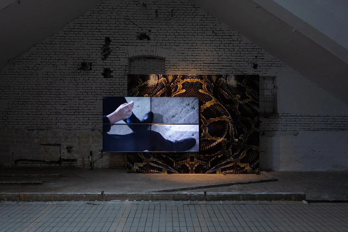 The plot of Two Minutes Before the Crime. A Minute Before... connects several references. First of all, the title refers to the work of Vanet Bor, Yugoslav surrealism and his work of the same name. The plot of the video, like in Bor's photographs, is a fiction created as an idea to reconstruct an event that precedes an act that at the moment of the photographing we cannot know whether it will happen or if it ever happened. In the case of the video I am creating, I am reconstructing an incident that really happened in the local political reality. In fact, I am reconstructing the immediate time period that preceded the assassination of Serbian Prime Minister Zoran Djindjic in 2003. The reconstruction is based on references from the trial transcript in which the assassin Zvezdan Jovanović, better known to his associates under the nickname Zmija / Snake, describes in his testimony the moments before, during and immediately after the assassination. The accused states in his testimony that for several hours, while waiting for the prime minister to appear, he smoked a pack of Davidoff cigarettes by the window from which he had been watching his victim. This statement served to build the work in which we see a room in space that is re-lit and smokes cigarette after cigarette in an uncertain time interval that obviously precedes some greater and obviously more desperate act for that person. By analyzing - fetishizing this working desire to more realistically depict the cold-bloodedness of the predator who is tearing apart his victim, but also to temporarily, at least in a fictional space, escape the discomfort of encountering the consequences of the tragic act that follows. He observes her in a way exposed to a banal action that, outside of the given context, says nothing in itself, but at the same time, unconsciously, he himself observes the exposed gaze of the fictional predator from the projected image, similar to the gaze of the Snake who observes the prime minister from the window before the brutal act.